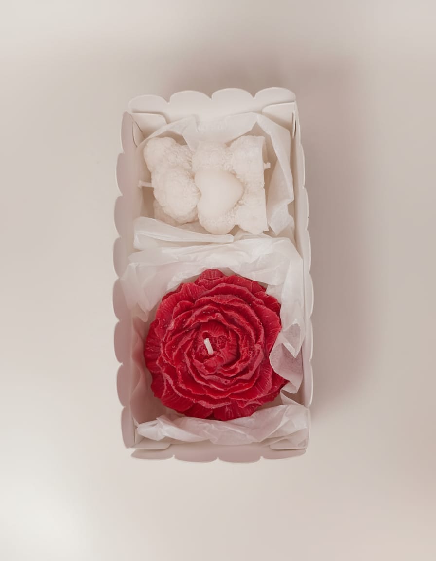 A sweet Valentine’s gift box with one rose-shaped scented candle and one cute teddy bear. Made to share love, warmth, and smiles, this combo is perfect for surprising your partner and creating a cozy, romantic moment.